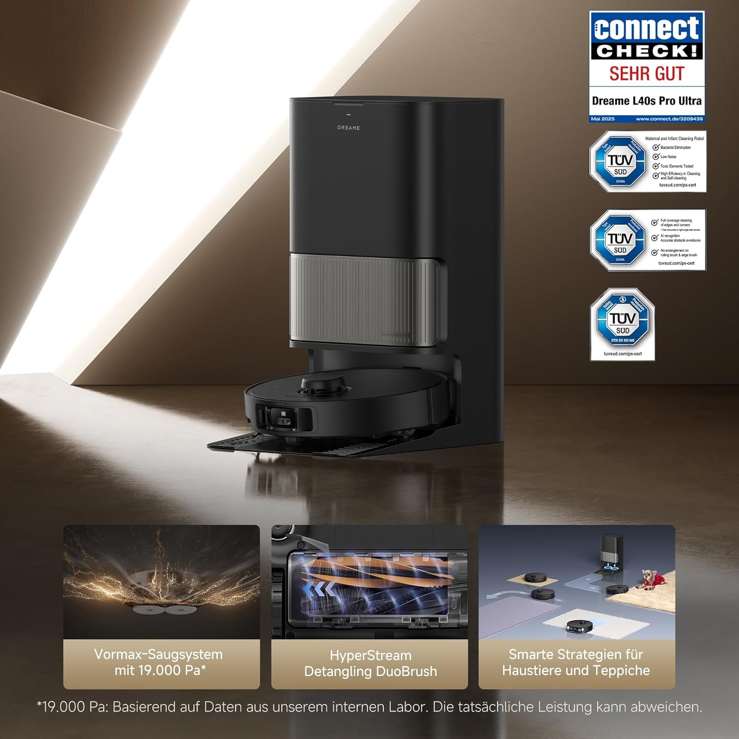Dreame L40s Pro Ultra, 19,000Pa, Selbstreinigend, Hindernisvermeidung, Sprachsteuerung