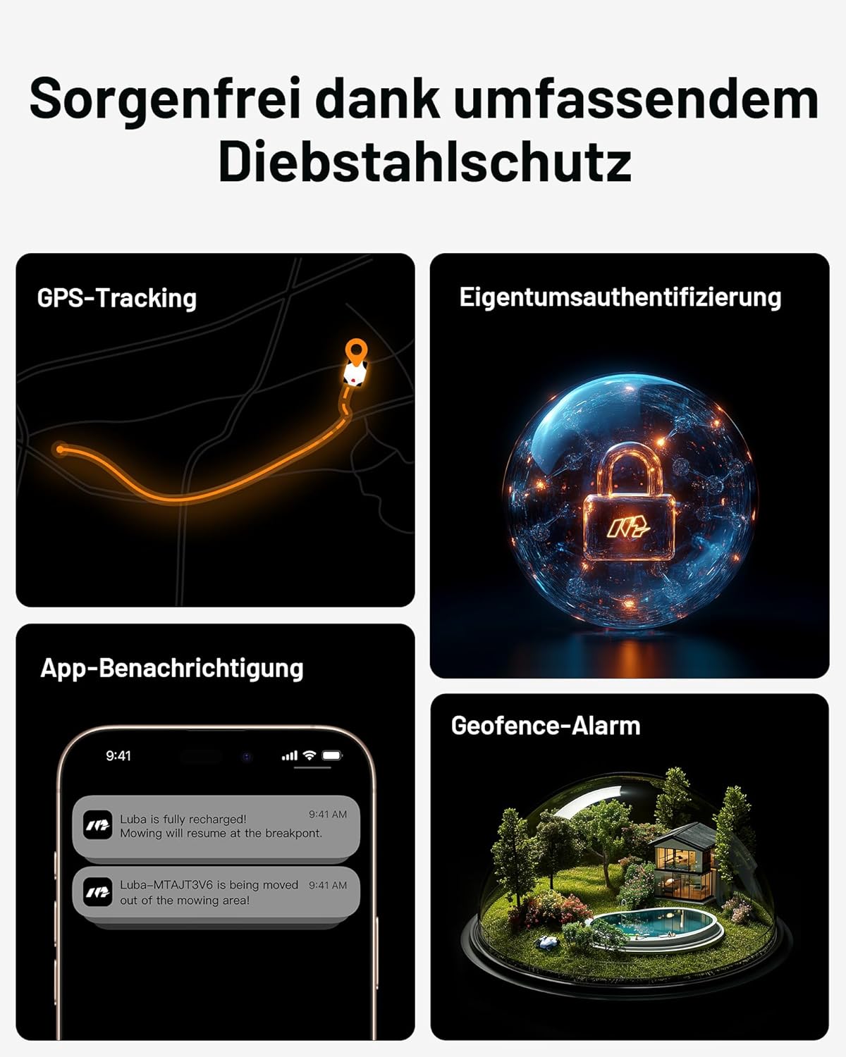 • Maximale Sicherheit bei der Rasenpflege: LUBA 2 AWD kombiniert visuelle Erkennung, Ultraschallradar und physikalische Sensoren für fortschrittliche Hindernisvermeidung. Die optimale Sensoranordnung eliminiert tote Winkel und bietet dreifachen Schutz für Familie, Haustiere und Wildtiere. Bewegliche Hindernisse wie Eichhörnchen und Igel werden intelligent erkannt, und sanfte Umgehungsrouten sorgen für maximale Sicherheit während des Betriebs