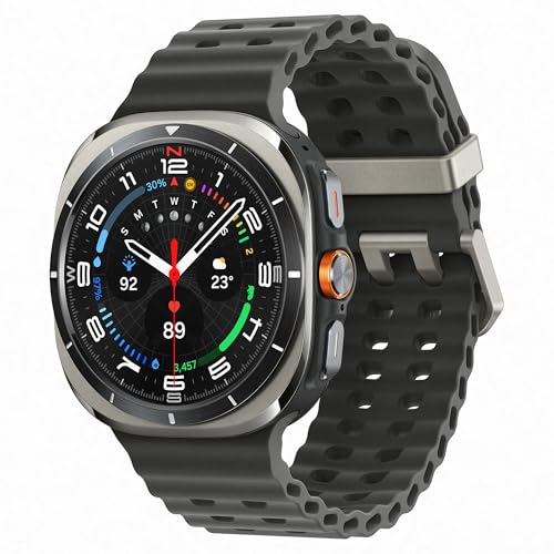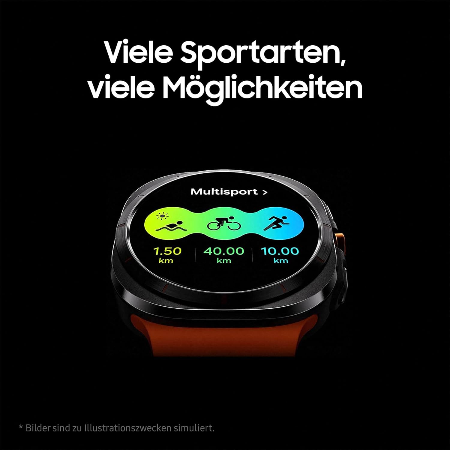 Die Samsung Galaxy Watch Ultra ist dein ultimativer Begleiter für jedes Abenteuer! Mit ihrem robusten Titan-Design und 10 ATM Wasserschutz ist sie für jede Herausforderung bereit, egal ob an Land oder im Wasser. Erlebe KI-gestützte Einblicke in dein Wohlbefinden und profitiere von einer beeindruckenden Akkulaufzeit, die dich tagelang begleitet. Dank präzisem Dual-GPS findest du immer den richtigen Weg und erreichst mit Leichtigkeit deine Fitnessziele.