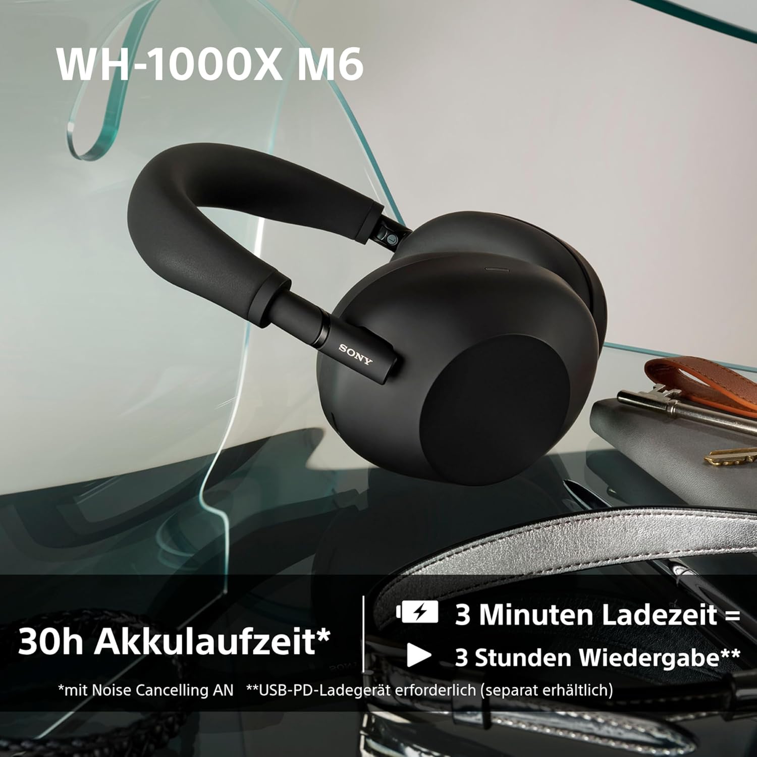 Sony WH-1000XM6 Flagship Noise Cancelling Over-Ear Kopfhörer – Hi-Res Sound, Komfort, faltbar, 30h Akku