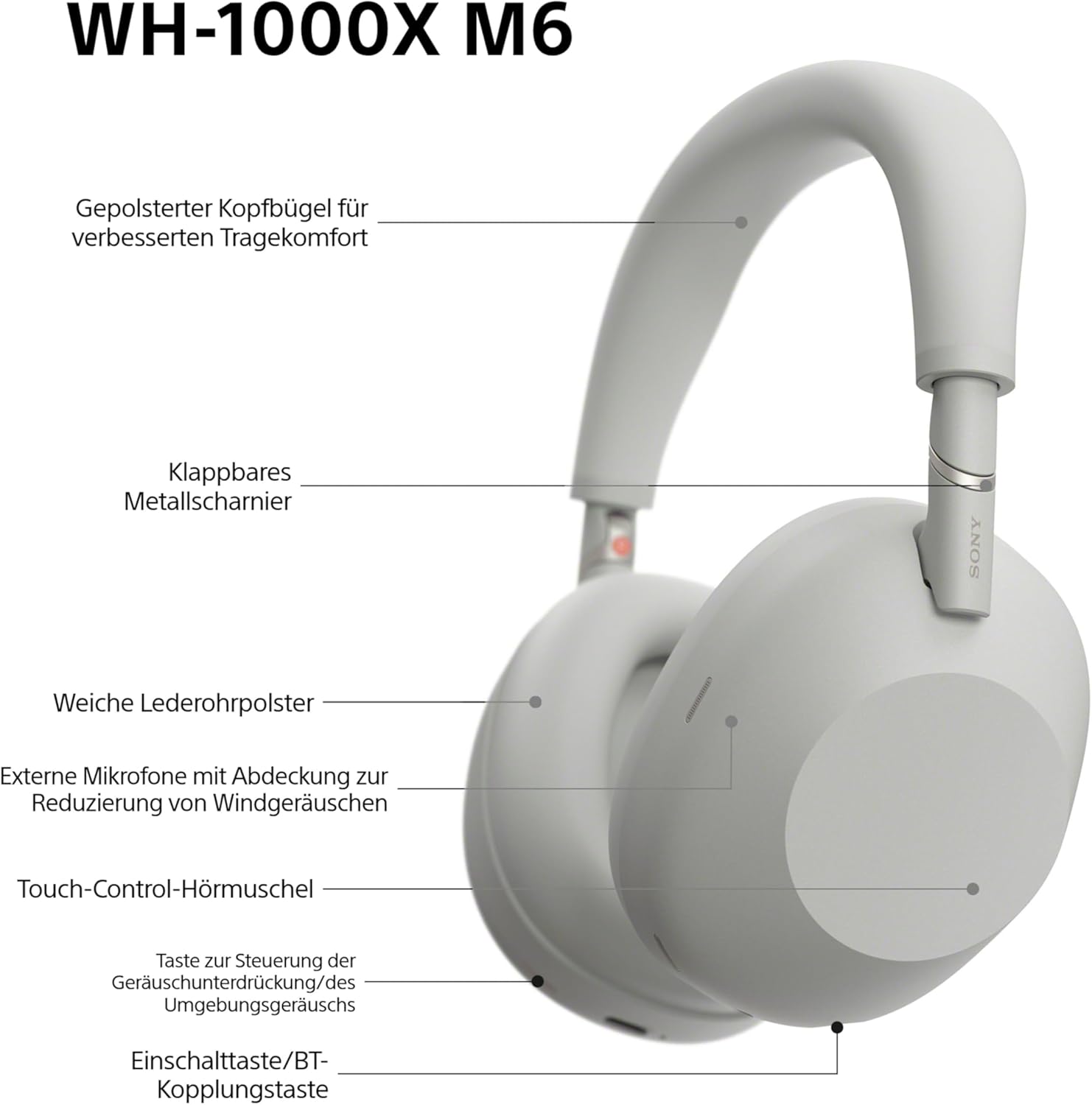 Sony WH-1000XM6 Over-Ear Noise Cancelling Kopfhörer: Hi-Res Sound, Komfort, faltbar, 30h Akku