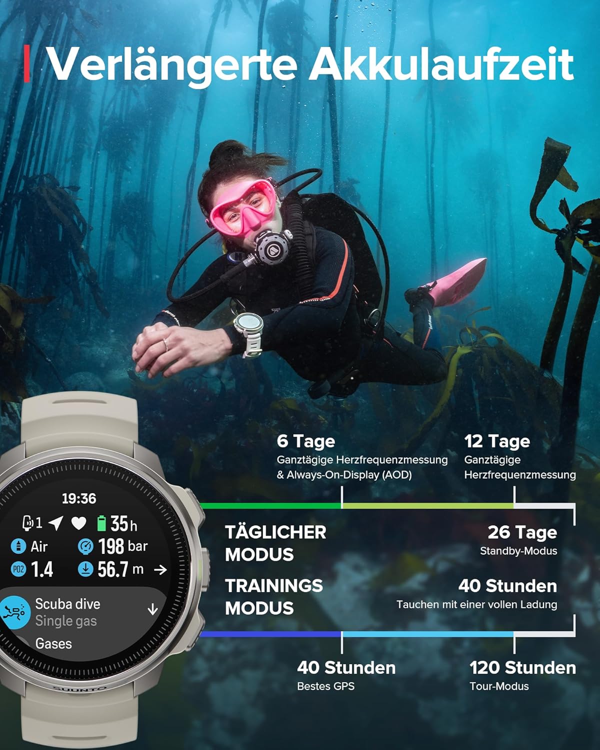 Tauche ab in eine Welt voller Abenteuer mit der SUUNTO Ocean! Dieser superhelle AMOLED-Tauchcomputer und Sportuhr ist dein perfekter Begleiter unter und über Wasser. Mit 5 Tauchmodi, präzisem GPS und Offline-Karten entdeckst du neue Reviere und verfolgst deine Erfolge. Und das Beste? Der Akku hält ewig, damit du nie einen Moment verpasst!