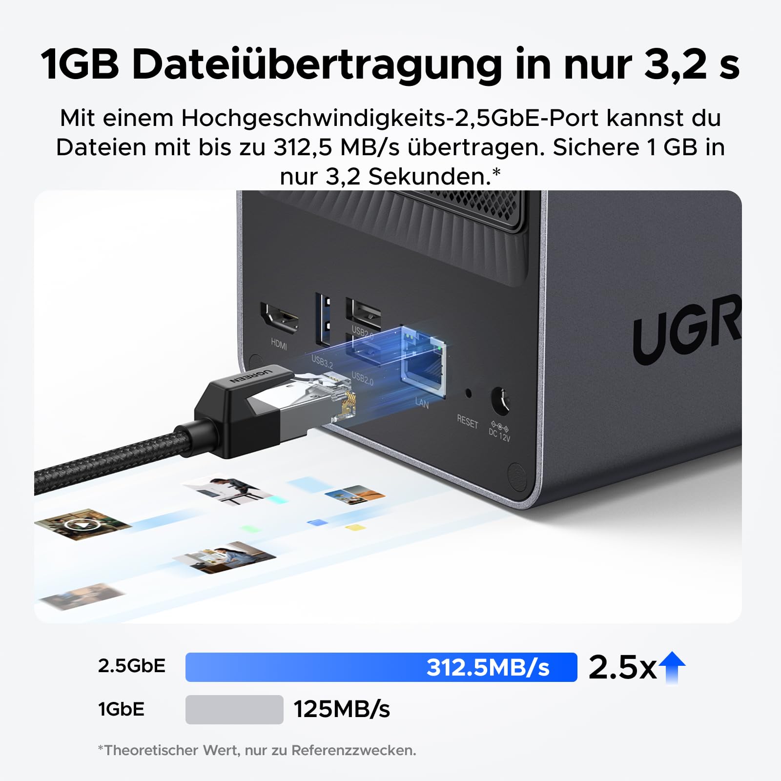 • Ultraschneller 2,5GbE-Netzwerkanschluss: Übertragungen mit Geschwindigkeiten von bis zu 312,5 MB/s ermöglichen reibungsloses Streaming und schnelle Backups.