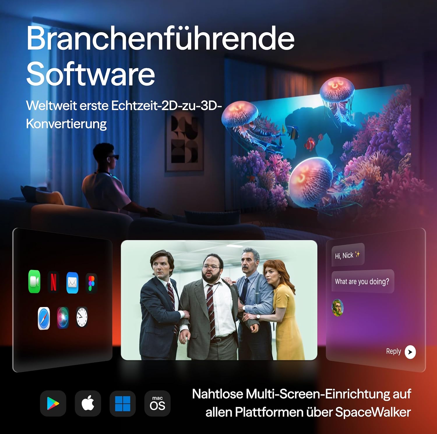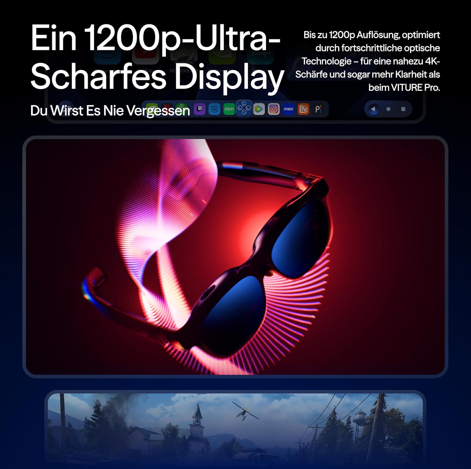 Tauche ein in eine digitale Welt, die deine Erwartungen sprengt mit der VITURE Luma Pro XR-Brille. Erlebe ein gigantisches 152-Zoll-Display in gestochen scharfer 1200p-Auflösung und atemberaubenden 1000 Nits Helligkeit, das jedes Detail zum Leben erweckt. Dank Harman Audio genießt du satten Sound, während die innovative 2D zu 3D Konvertierung und Multi-Screen-Fähigkeiten deine Produktivität spielerisch steigern. Egal ob Gaming oder Arbeit, diese Brille macht alles zum Erlebnis!